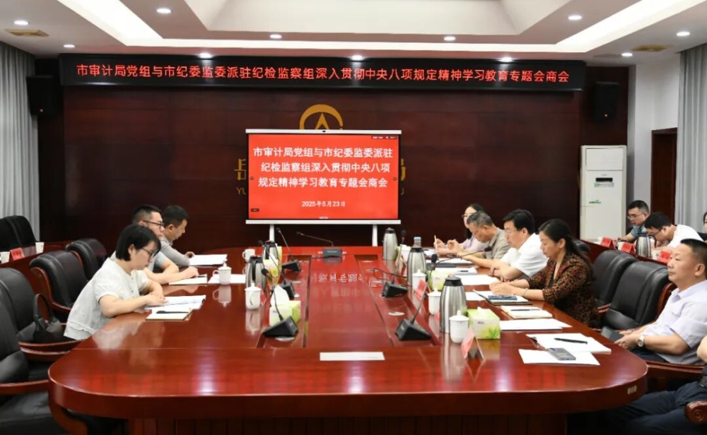 5月22日,市审计局党组与市纪委监委派驻纪检监察组召开深入贯彻中央八项规定精神学习教育专题会商会。会议由局党组书记、局长刘建民主持,市纪委监委第十三纪检监察室主任付正,市纪委监委驻财政局纪检监察组组长方志安出席会议,市审计局领导班子成员、调研员,相关科室(中心)负责人参加会议。