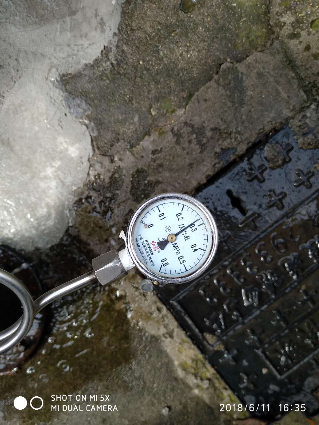 收到您的信件后我公司十分重视,已安排相关人员到现场两次核实情况并电话与您沟通,经测试,该区域一楼压力为0.28MPa(6月11日 16:35数据 如图),属于市政供水正常范围内。