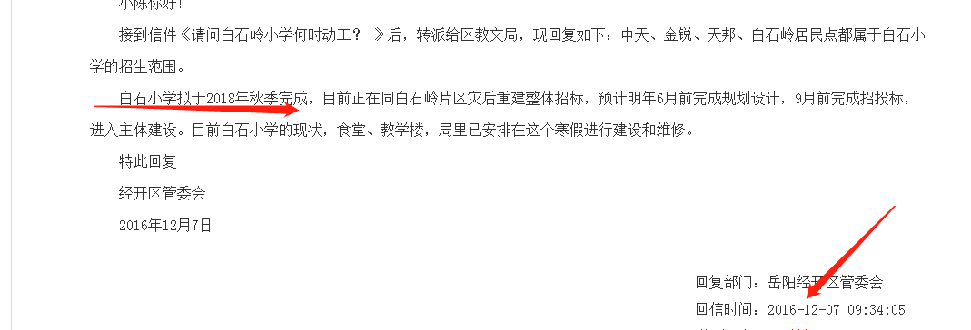 请问经开区白石岭小学何时扩建,从16年到17年,现在已经到了18年,马上步入19年,说实话经开区的办事效率,服务态度,政府部门的能力,还真不如下面的区县,看看八字门这边的规划,混乱程度。