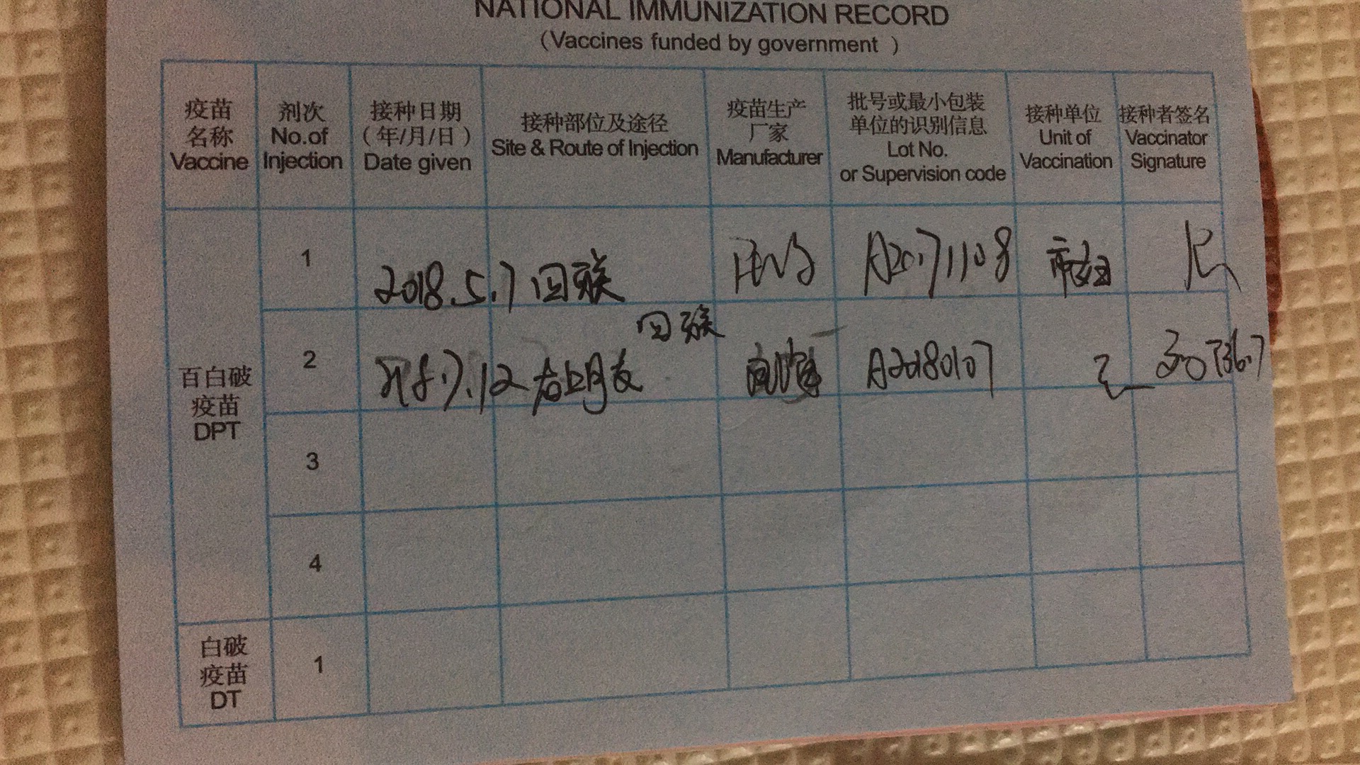 市妇幼疫苗本注射登记不完整不清晰
