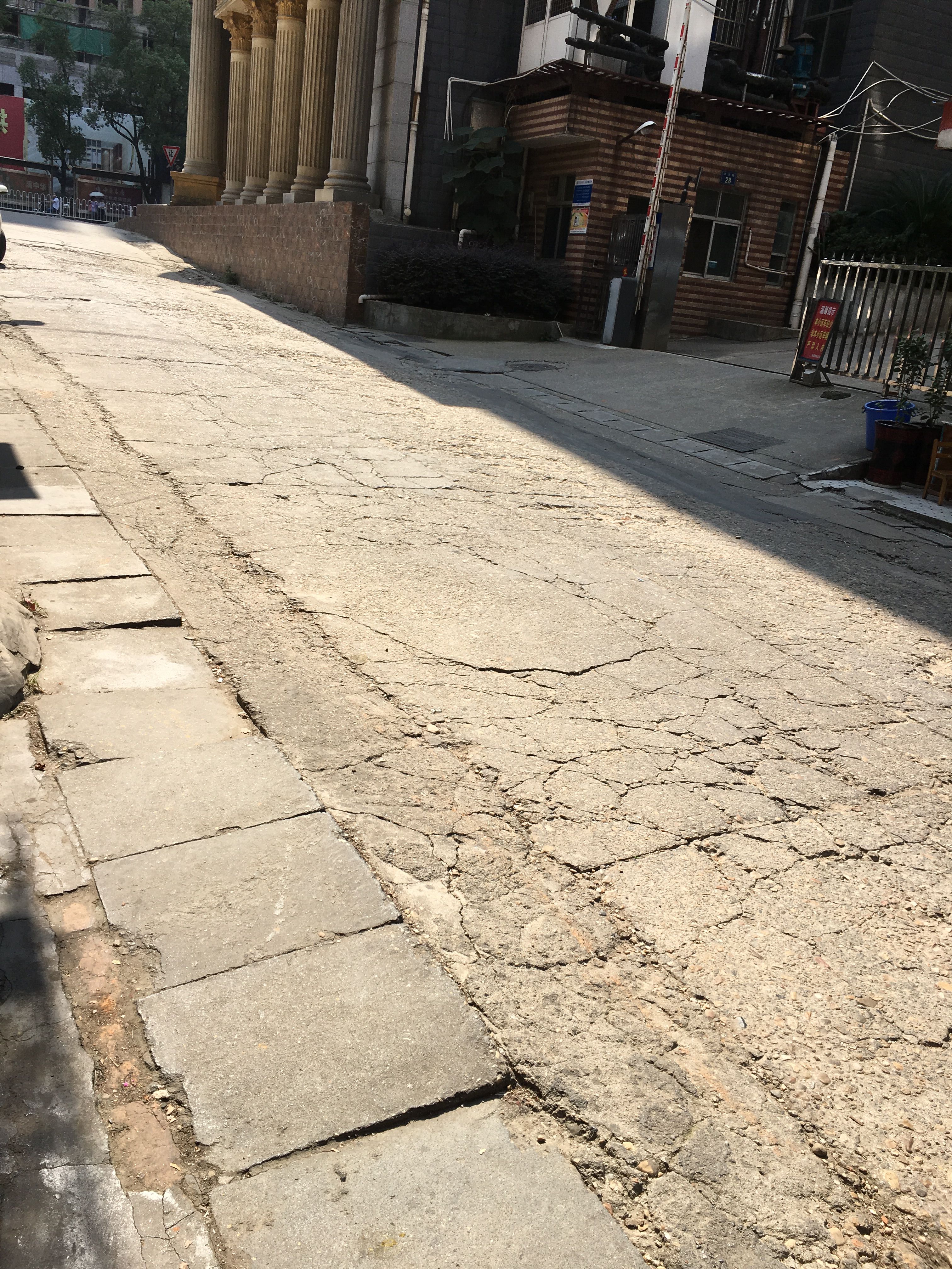 新路口长乐街最南端的下坡一路下来,没有一块完好的路面,长期招大车碾压,坑坑洼洼、道路破烂不堪的状况已经持续很多年了,请问谁该来维护并修好路面?何时才能还老百姓一个平整的路面?