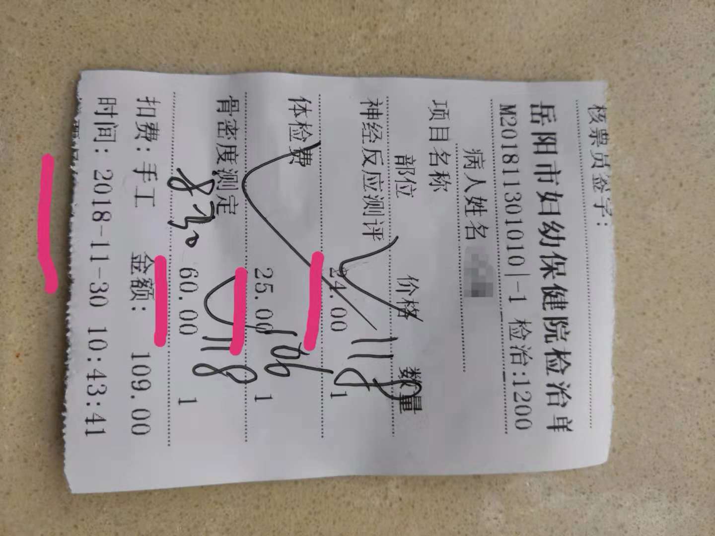 神经反应测评(24元),就是摇拨浪鼓看孩子是不是追着声音,提着孩子手臂,看孩子抬不抬头,