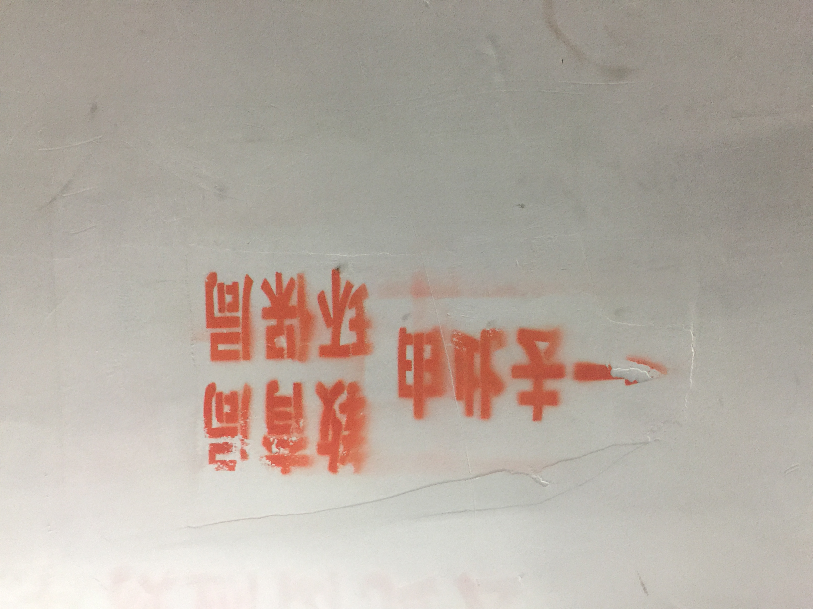 如图,不知道领导们看到安排的喷漆指示牌作何感想?存在至少1年多了,作为会展中心周边单位重要的过街通道,指示牌就这么草草了事,还是反着喷的。另外通道灯管维修不及时,手机信号没有,角落经常还有滞留的尿渍,能否做成城市展现的一个窗口。