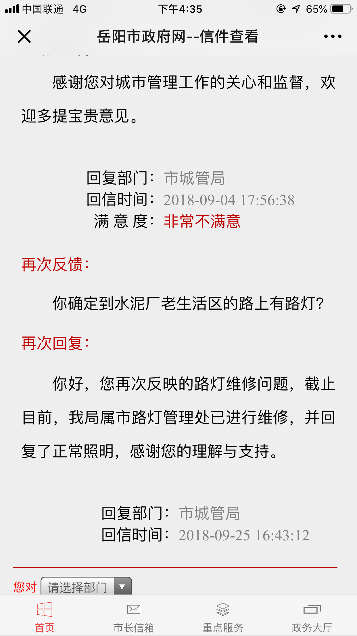 信件回复 满意度调查