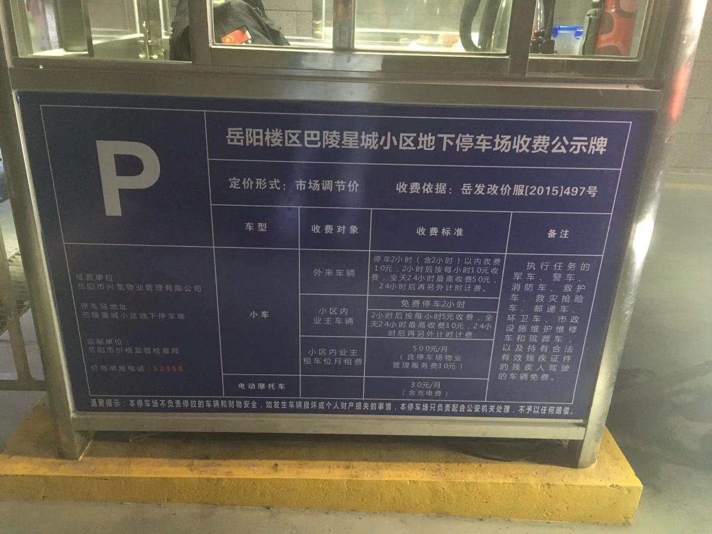 尊敬的领导: 您好! 玉鑫·巴陵星城停车费用目前如下: 外来车辆:停车2小时(含2小时)以内收费2元,2小时后按每小时10元收费,全天最高50元。 小区内业主车辆:免费停车2小时,2小时后按每小时5元收费,全天最高30元。 小区业主月卡:500元 对比岳阳是其他小区和停车场,这个定价远远高出的市场价位,是否合理,定价标准是什么,还是说任由物业开发商定价。 |