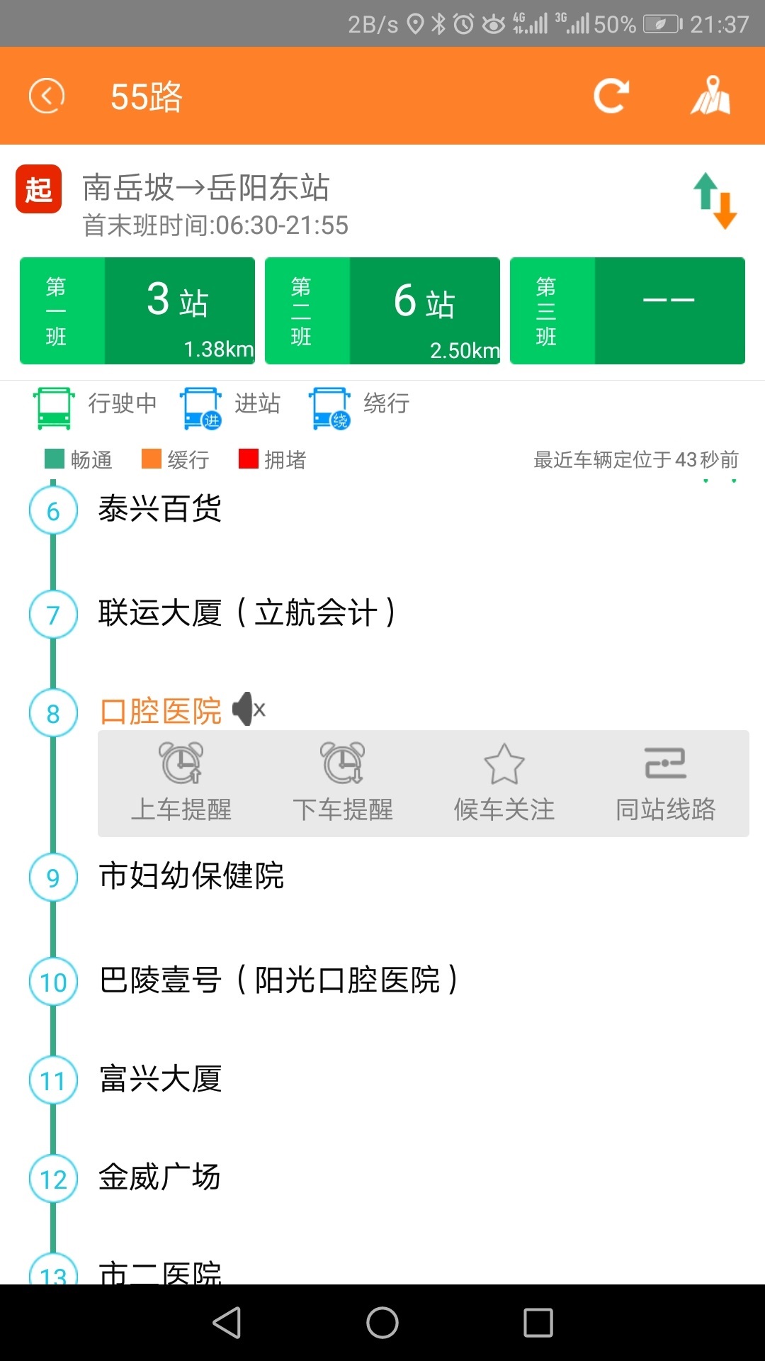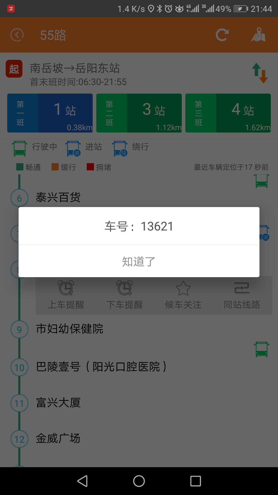 等着等着,我突然发现前一辆车在从泰兴百货站发出后定位就消失了,约7分钟后出现在妇幼保健院,而这段时间它并没有从我面前开过去!在这期间有几辆10路车和其它车辆开过去,并没有道路拥堵,为何司机会绕路?难道不是因为发车晚了,要赶点麽?我想这不是绕路的正当理由把??从APP上显示该班次车号为13621!