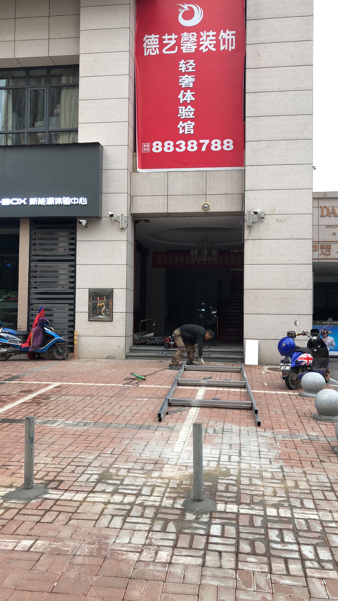 5月9日上午,经我局城管支队执法队员现场核实,您反映的问题情况属实。我局城管执法队员针对责任单位“德艺馨装修公司”占道设置障碍物的行为当场下达了责令整改通知书,并要求其尽快拆除占道的铁柱和石球。5月10日,在执法队员的现场监督下,该公司私自设置的障碍物已全部拆除到位。我们今后将继续加大周边道路巡查管理力度,严格规范此类占道行为,为市民营造整洁规范的生活环境。