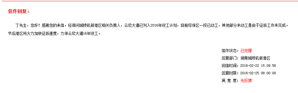 | 回复部门: | 岳阳临港高新技术产业开发区 |