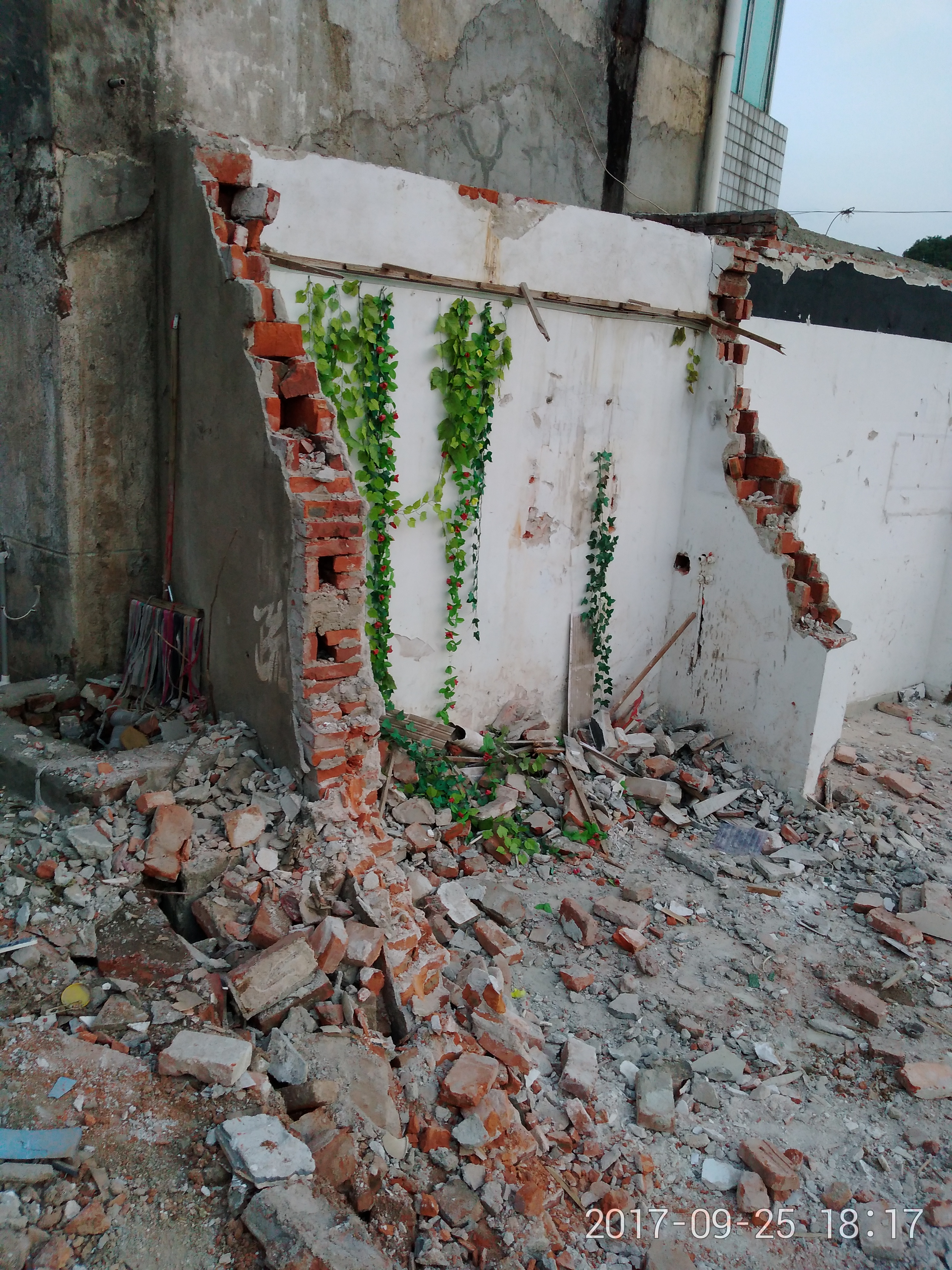 现在学院路在进行提质改造工程,将在学院路与蔡家小学路口的东冲巷2号的房屋进行了拆除,但拆除不砌底,有一面墙没有拆除(如图),因为在蔡家小学的出口,经常有小学生在墙下墙下玩,有极大的安全隐患,望有关部门重视尽快拆除此危墙,谢谢。