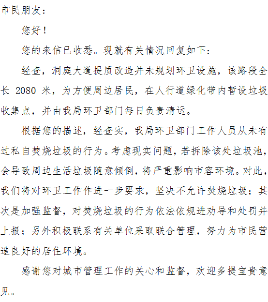 洞庭大道中国银行对面,人行道往里约10米,绿化带里修有一个垃圾池,有相关单位在里面焚烧垃圾已持续快一年了,焚烧的垃圾浓烟滚滚,严重污染了周边居民的生活环境和巴陵公司的办公环境。