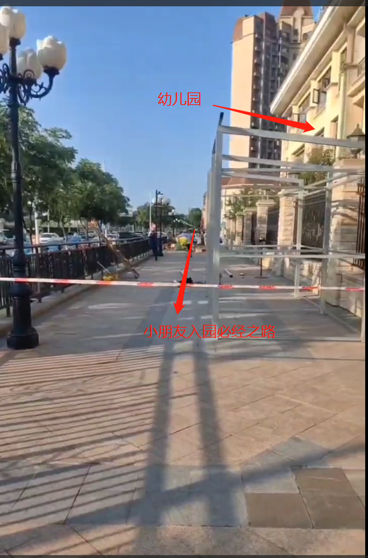 该条道路属于小区幼儿上学的必经之路,这条路上早上有人在周边摆摊卖菜,卖龙虾、卖鱼,地面无人清洗,每次经过都有一股鱼虾臭味,长期无人管理。近期居然有人在在幼儿园门口占用近一半宽度的道路搭建固定铁棚子用于摊位经营,经过了全体业主的同意吗?摆摊用的煤气罐本来就危险,为什么要放置于幼儿园的门口?作为消防通道,占用一半的道路如何进行疏散?幼儿的人生安全谁来守护?